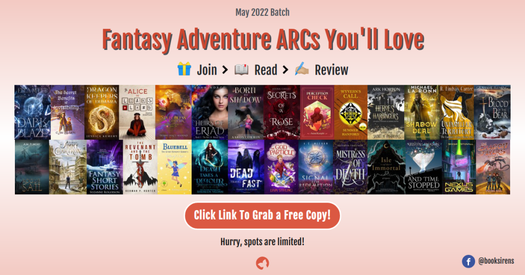ARC’s of Fantasy Short Stories is up for grabs along with lots of other fantasy adventure books by various authors. There are plenty to choose from and all that’s asked in return is a review on the usual sites.